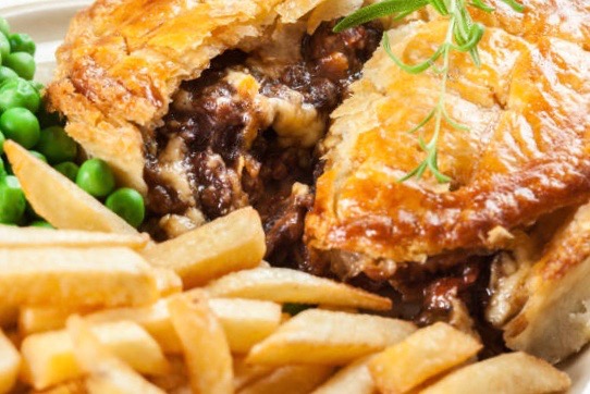 17/10/2023  •  542 × 362  •  Homemade beef stew pie with french fries. Meat in puff pastry